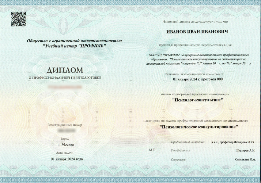 Диплом «Психолог-консультант» Высшей школы управления